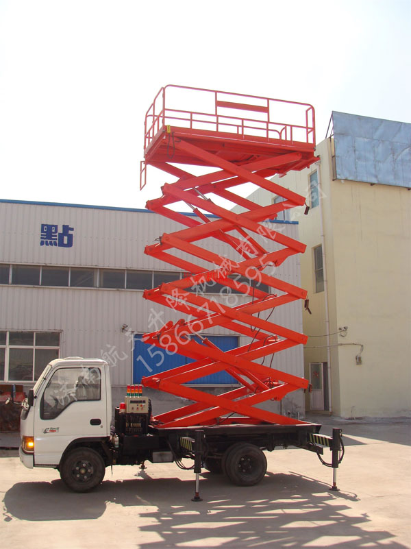 江西航天升降平臺廠家生產的車載剪叉式升降機具有機動性強、工作范圍較大等特點。特別適用于遠距離、大范圍、不同工作場地的高空作業,如公路交通、路燈照明、工程搶險等。平臺動力可使用汽車動力或直流蓄電池,安全可靠。適用的車型有五十鈴、BJ1041、江淮(JAC)、依維柯、福田、東風小霸王、時代小卡等輕型貨車及皮卡。