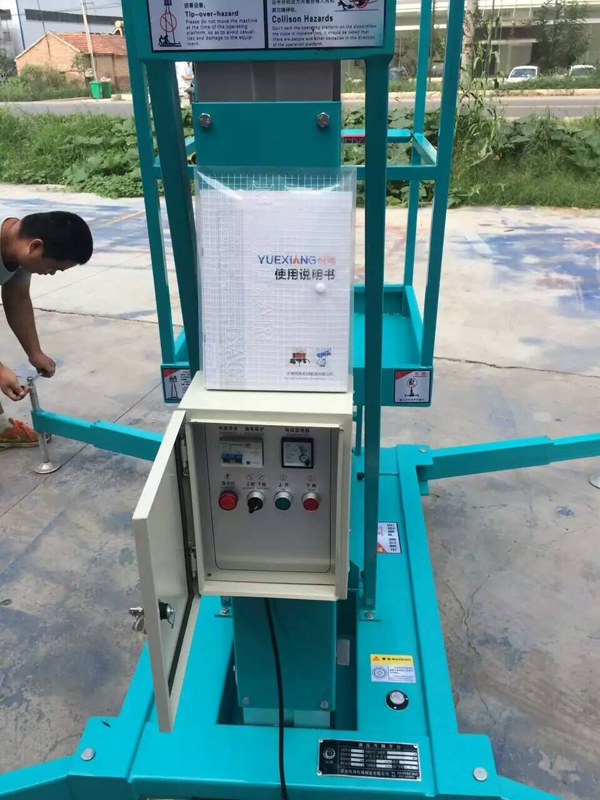 鋁合金升降機升高高度在8米以下為單跪柱式,在10米到14米之間為雙跪柱式,15米到18米之間則升為三跪柱式或四跪柱式。通過升降平臺跪柱的增加達到設備在高空的穩定性,保證作業安全,減小設備晃動的幅度,使高空作業更加平穩。鋁合金式液壓升降平臺下降速度可自調,而且設備設有手動下降裝置,保證在停電時的正常工作;設有應急停運按鈕;臺面設有防滑絕緣扣板,更換方便,易于清潔,維修方便,有效保障工作安全可靠,保證使用人員的安全。外形美觀,整體輕盈,能在小的空間內發揮好的舉升功能,也可根據客戶要求加裝蓄電池以滿足客戶工作場地的不同要求。