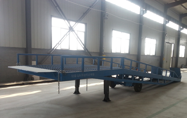 移動式液壓登車橋產品采用人工液壓動力,不需外接動力電源,只需單人操作,就可以實現貨物的安全快速裝卸,節省時間和人力資源。它可使企業減少大量勞動力,成倍提高裝卸作業效率,加快貨物流通速度,獲取更大經濟效益。移動登車橋被廣泛應用于無裝卸設備的貨臺及流動裝卸場所,是與叉車配合使用的貨物裝卸輔助設備。并可以根據不同的車型及裝車過程車廂的高度變化進行調節。廣泛應用于大型化工工廠運輸備料、物流集散中心運輸貨物、港口碼頭上下集裝箱,移動式液壓登車橋廣泛的應用各種物流或者工礦企業的裝卸貨物的工作當中。