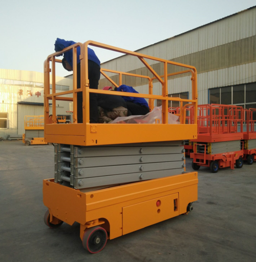 自行剪叉式升降機具有自動行走功能,整機一體式設(shè)計,內(nèi)置電瓶電源,滿足在不同工作狀態(tài)下,不需外接電源,不需外來動力牽引即可升降自如,而設(shè)備的行走轉(zhuǎn)向也只需一人便可完成。操作人員只需掌握好設(shè)備前的控制手柄即可完成設(shè)備前進、后退、轉(zhuǎn)向、快、慢速行走和上下等動作。自行剪叉式升降平臺移動靈活,操作方便、省工、省力令高空作業(yè)更方便快捷,是現(xiàn)代企業(yè)高效安全生產(chǎn)之理想高空作業(yè)設(shè)備。