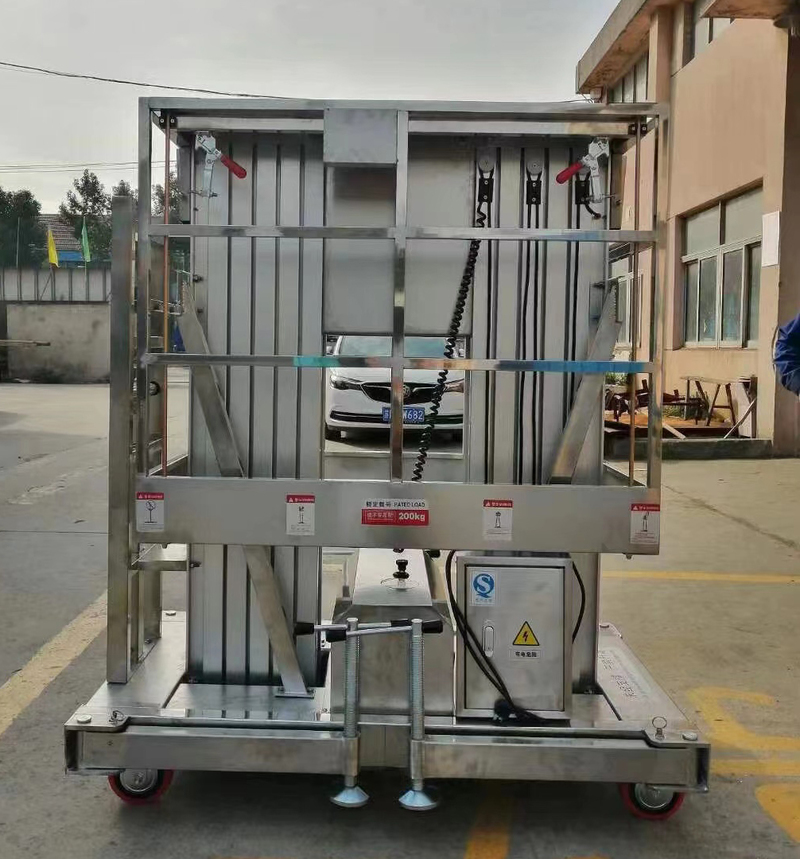 鋁合金式升降機整體采用高強度鋁型材精制而成,動力經(jīng)過液壓泵站帶動鏈條傳動,能夠上下操作,令高空作業(yè)更方便快捷。